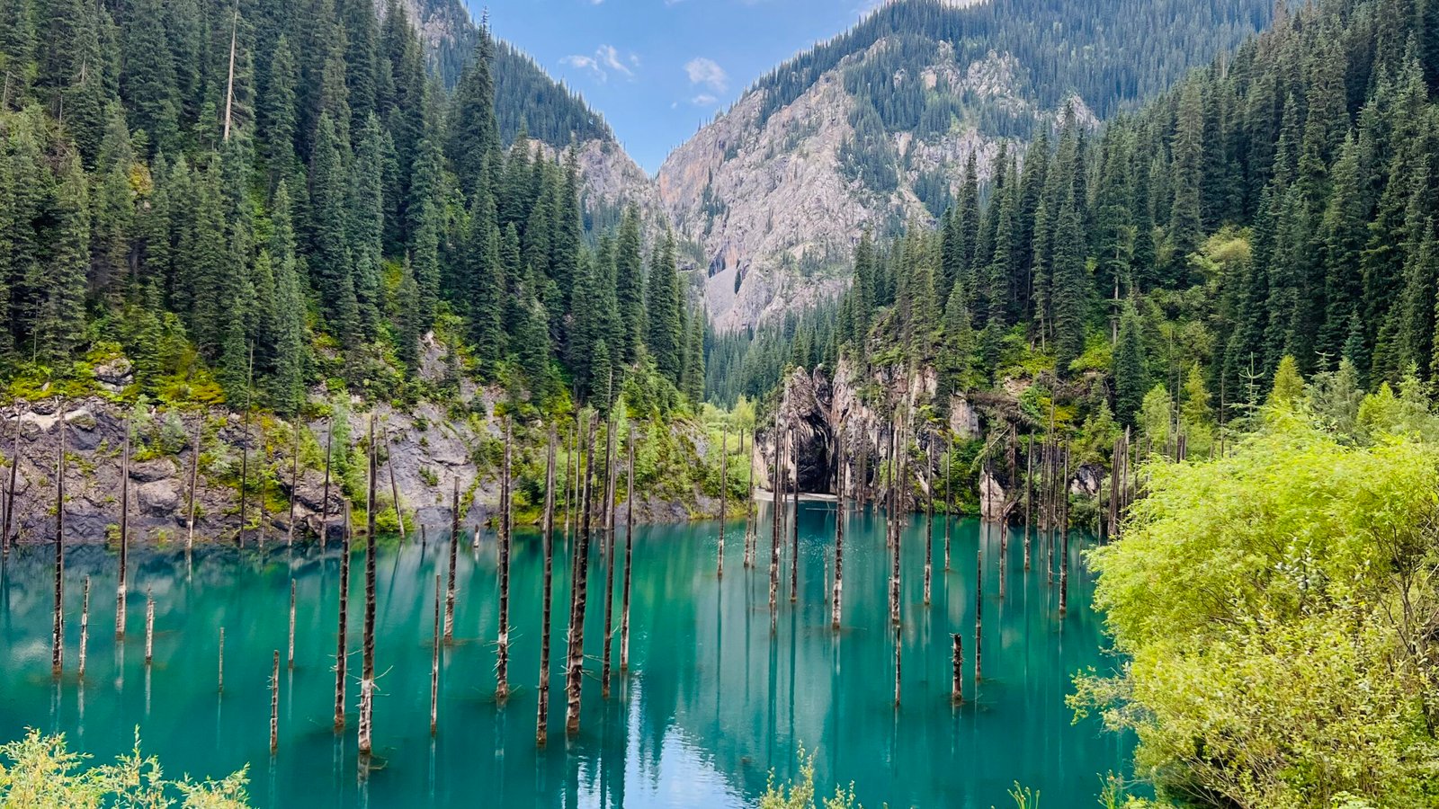 Visit Kaindy Lake, famed for its submerged spruce forest, creating an otherworldly atmosphere. Cross the Kegen border into Kyrgyzstan and proceed to Karakol. Accommodation in a guesthouse. Meals include breakfast, lunch, and dinner.